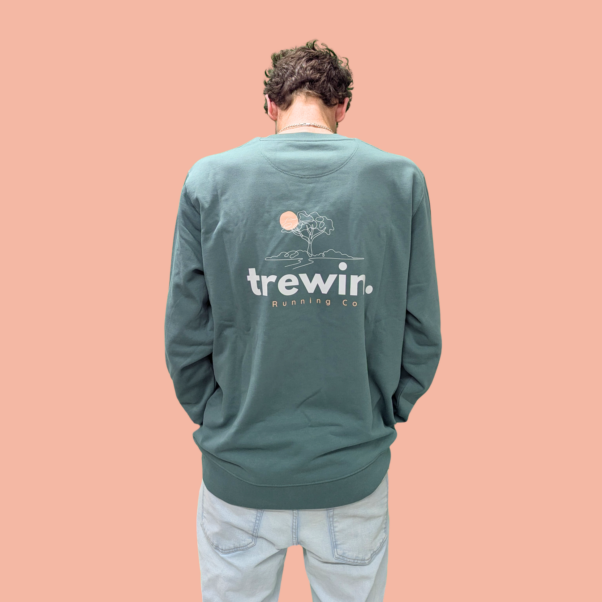 Step out the house in our Crew neck Sunlit Canopy Sweatshirt. Inspired by running on the country roads in the Scottish Borders surrounded by beautiful green fields and trees during sunset and sunrise.
